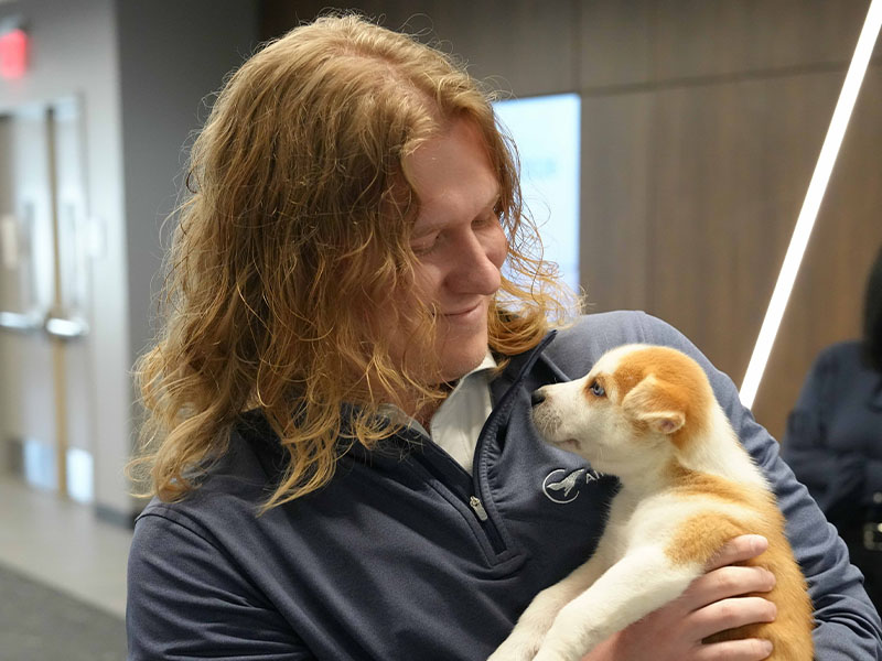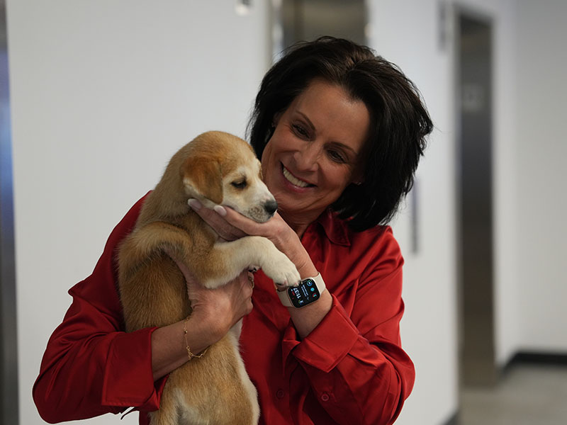 From spontaneous puppy cuddles to team members gathering for photos and much-needed midday smiles, the energy around the office was contagious. Whether holding a sleepy pup or laughing as one scampered across the room, our team embraced every moment of “puppy love.”